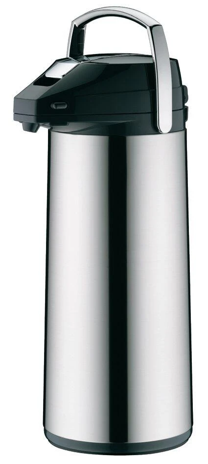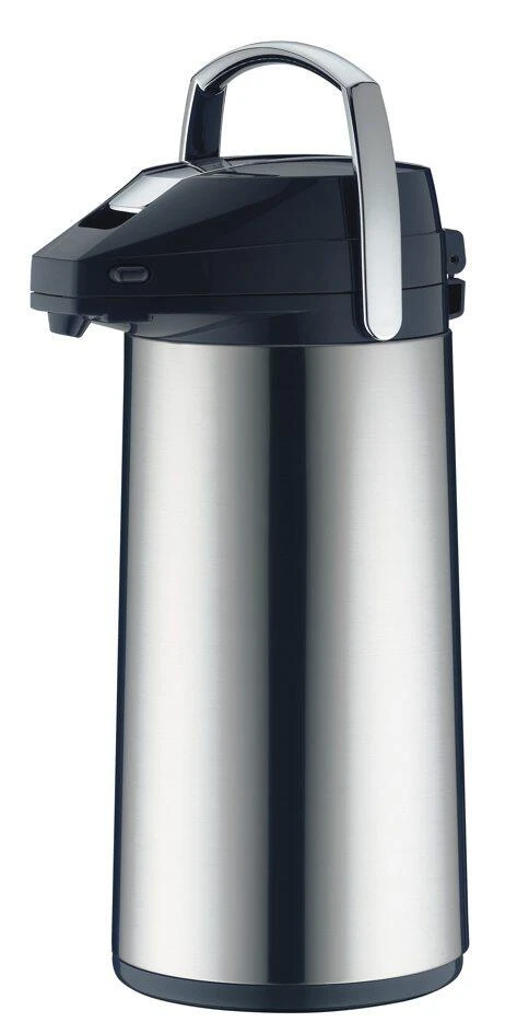 Der alfi Isolier-Getränkespender (Isolierkanne) in pflegeleichtem Edelstahl besitzt ein Deckelsystem mit Einhandbedienung. In 2,2 l und 3,0 l für 17 oder 24 Tassen.