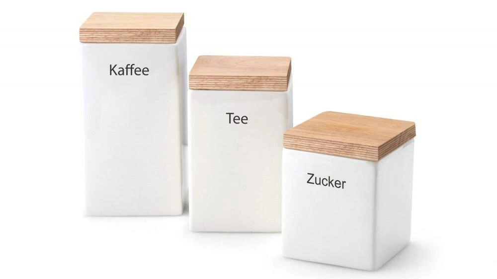 - Austauschbare Beschriftungen (Kaffee, Tee und Zucker) zum Aufkleben