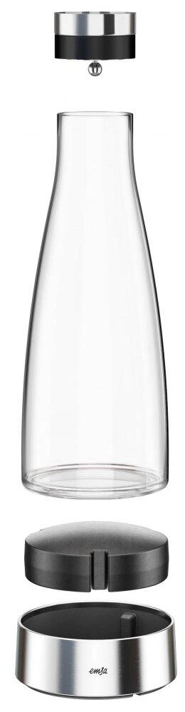 Emsa Kühlkaraffe Flow Bottle, 1,0 L. Die Karaffe im schlanken Design für alle Getränke, die am besten gekühlt schmecken. Dieser einzigartige Dekanter ist mit einem Kühlaggregat ausgestattet, der die erforderliche niedrige Temperatur vier Stunden lang hält.