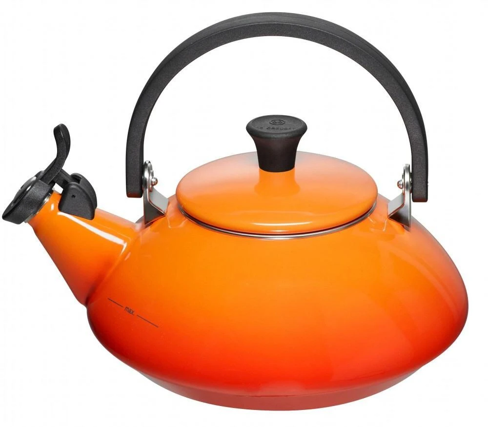 Wasserkessel Zen ofenrot. Die Wasserkessel aus emailliertem Stahl sind farblich auf das Le Creuset Kochgeschirr aus Gusseisen und Poterie abgestimmt und passen zu jedem Einrichtungsstil.