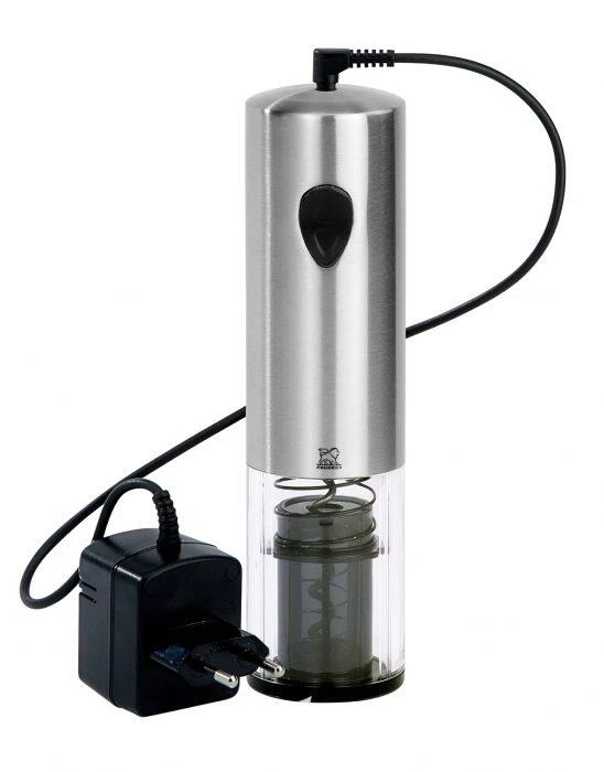Korkenzieher Elis. Erlaubt das Öffnen einer Weinflasche ohne jede Anstrengung in wenigen Sekunden. Kann bei den verschiedensten Flaschenhälsen und bei allen Korkenmaterialien eingesetzt werden. Die aufladbaren Batterien sind sehr sparsam und somit besonders umweltfreundlich.