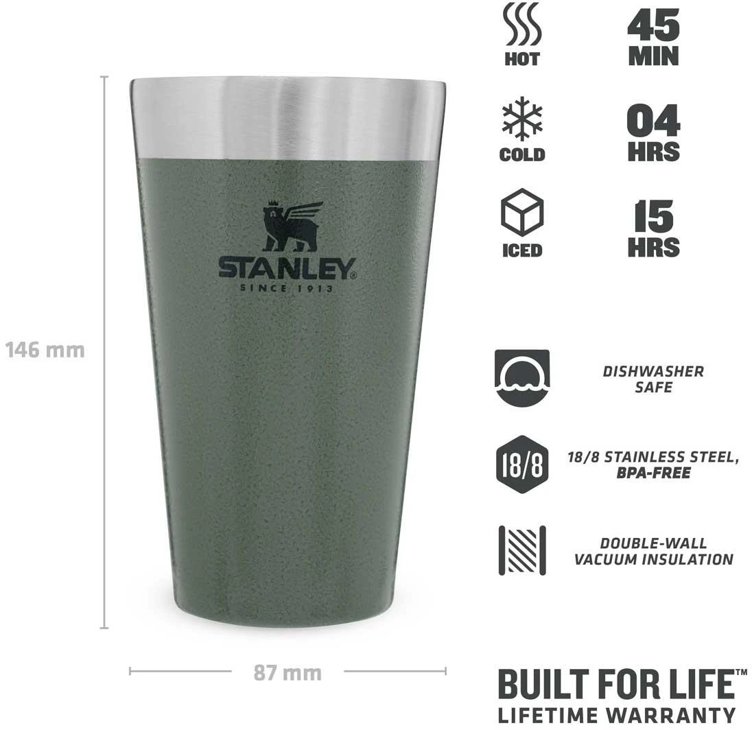 ROBUST UND SICHER: Der Stanley Edelstahl Bierbecher ist „built to last“: hergestellt aus hochwertigem, rostfreien 18/8 Edelstahl, der robust, leicht und 100% lebensmittelecht ist. Die Materialien sind frei von BPA, so dass der Inhalt sicher konsumiert werden kann.
