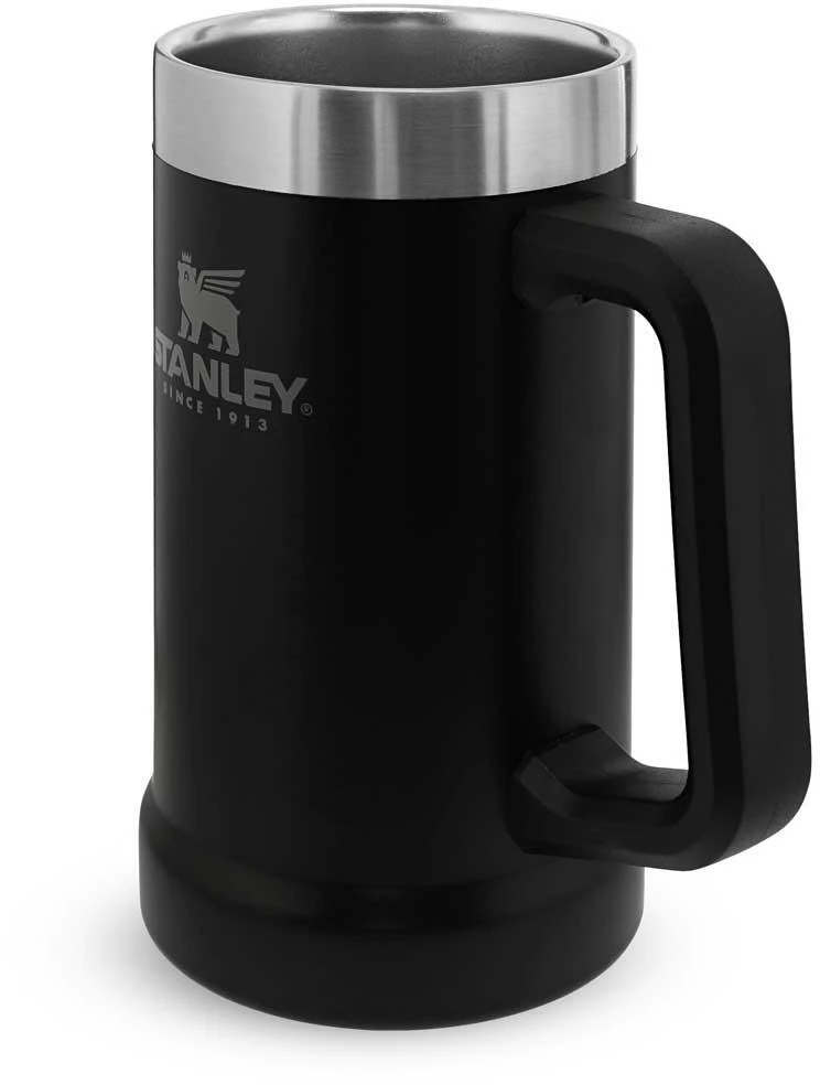 Dieses Produkt ist ein Muss für Bierliebhaber: Der mattschwarze Stanley ADVENTURE VACUUM STEIN – der vakuumisolierte Edelstahl-Bierkrug! Als cooles Oktoberfest-Accessoire, als Geschenk für private Oktoberfestfeiern oder einfach nur für den täglichen Biergenuss ist der ADVENTURE VACUUM STEIN perfekt geeignet. Dabei verfügt der aus 18/8-Edelstahl gefertigte Bierkrug dank des Vakuums über eine Kühlleistung von bis zu 7 Stunden. Das Produkt ist frei von BPA und außerdem spülmaschinenfest. Letzteres hat einen tollen Nebeneffekt: Der ADVENTURE VACUUM STEIN ist ideal für den Wechsel zwischen Kalt- und Heißgetränken geeignet, kann also auch zur XXL-Tasse für Tee und Kaffee genommen werden. Mit seinen 709 ml Fassungsvermögen (24oz. – Amerika lässt grüßen!) lässt er sich auch hervorragend ohne zu viel Vorsicht mit den handelsüblichen 500 ml-Flaschen befüllen, Schaumkrone inbegriffen.
