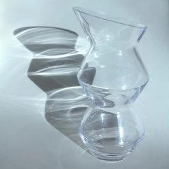 Dank der Formgebung des Halses fließt der Wein beim Eingießen an der kompletten Innenfläche entlang, was die Oberfläche des Weines maximiert und so bereits zur Luftzufuhr beiträgt. Die drei Mulden im Boden wirbeln den einfließenden Wein zusätzlich auf, was eine schonende aber dennoch sehr wirksame Belüftung zur Folge hat. Durch behutsames Schwenken des befüllten Dekanters kann dieser Effekt noch verstärkt werden. Weiterhin sorgen die drei Wölbungen auf der Unterseite für einen wackelfreien Stand. Der schräge Anschnitt des Halses und die sorgfältige Politur der Schnittkanten minimieren das Tropfverhalten beim Ausgießen.