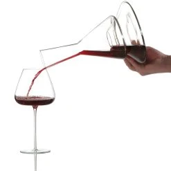 Der mundgeblasene Dekanter in klassischer Form entsteht durch die hohe Handwerkskunst erfahrener Glasbläser. Die Formgebung des Halses, der weit ausladende Korpus und die drei im Boden integrierten Mulden sorgen schon beim Befüllen für eine Maximierung der Oberfläche. So wird größtmöglicher Sauerstoffkontakt bei gleichzeitig schonender Entwicklung des Weines erzielt.